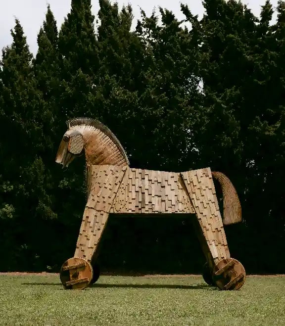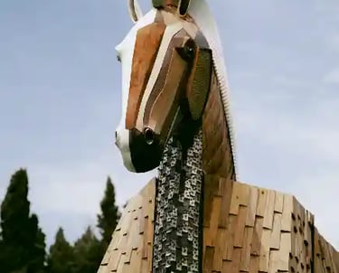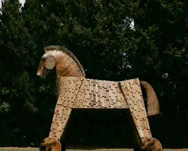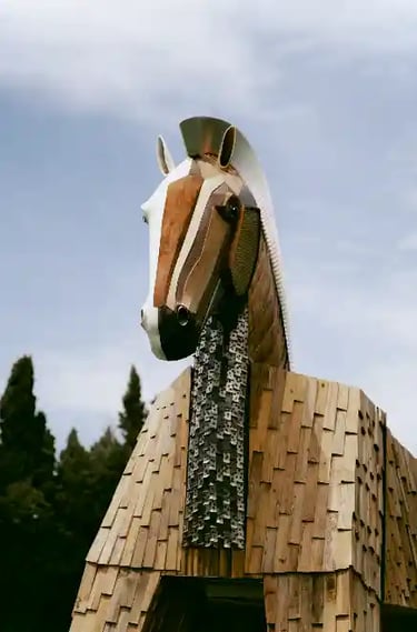 El caballo de Troya es un artefacto con forma de enorme caballo de madera que se menciona en la historia de la guerra de Troya y fue utilizado por los griegos como una estrategia para introducirse en la ciudad fortificada de Troya.